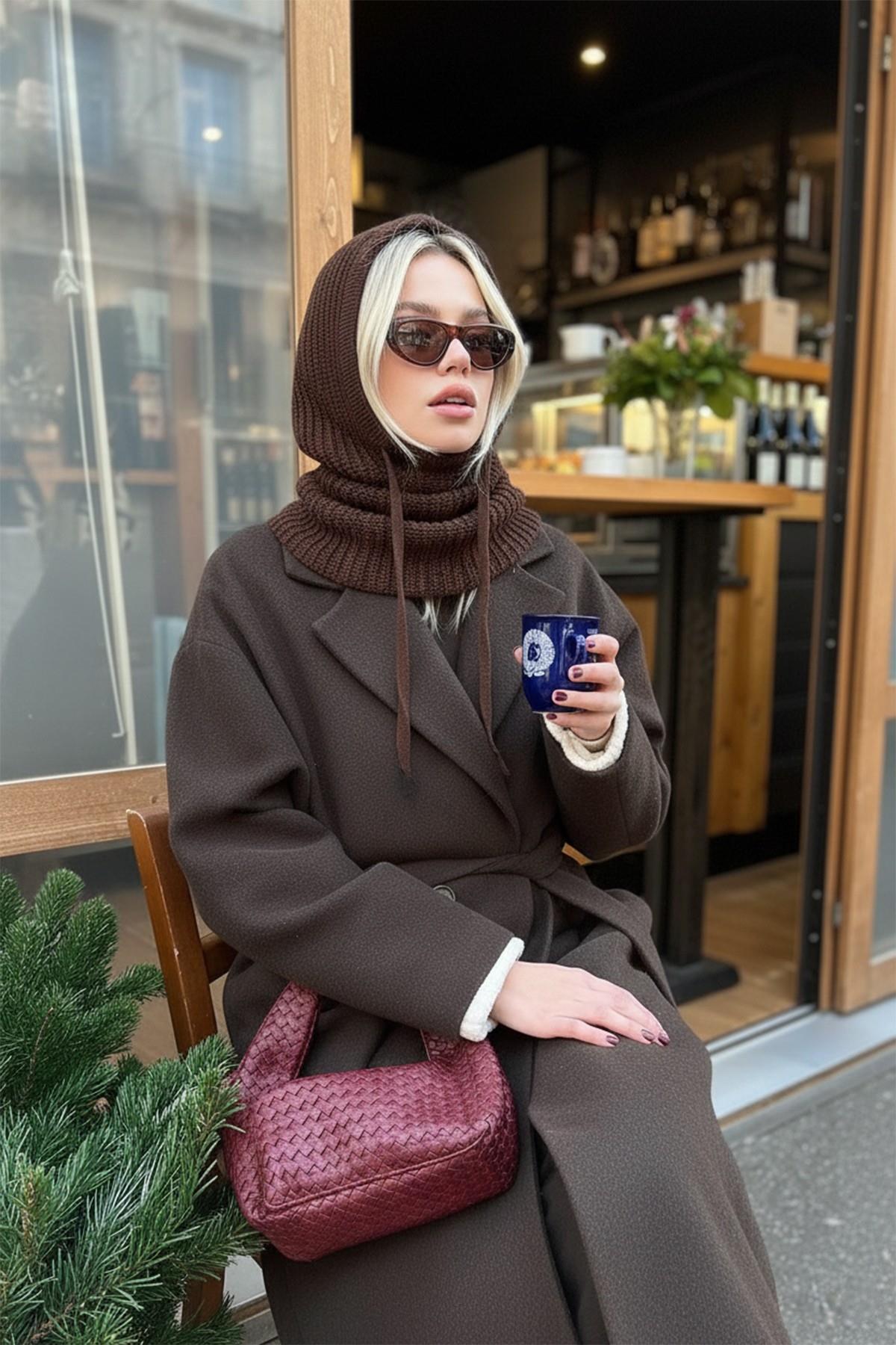 Acı Kahve Triko Örgü Balaclava Bere Şapka (BHT-4815)