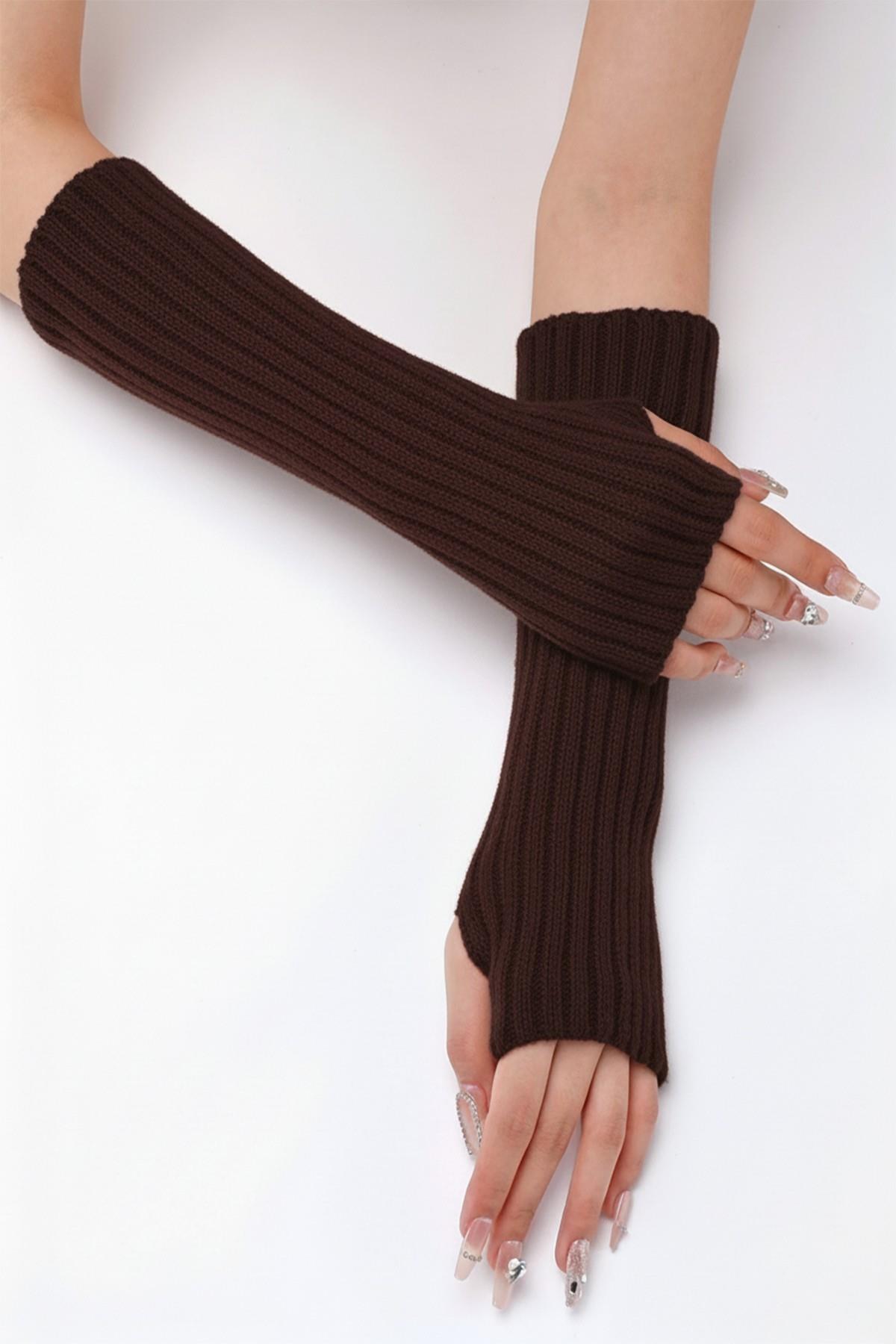 Acı Kahve Triko Örgü El Isıtıcı Kolluk Parmaksız Eldiven (BHT-4808)