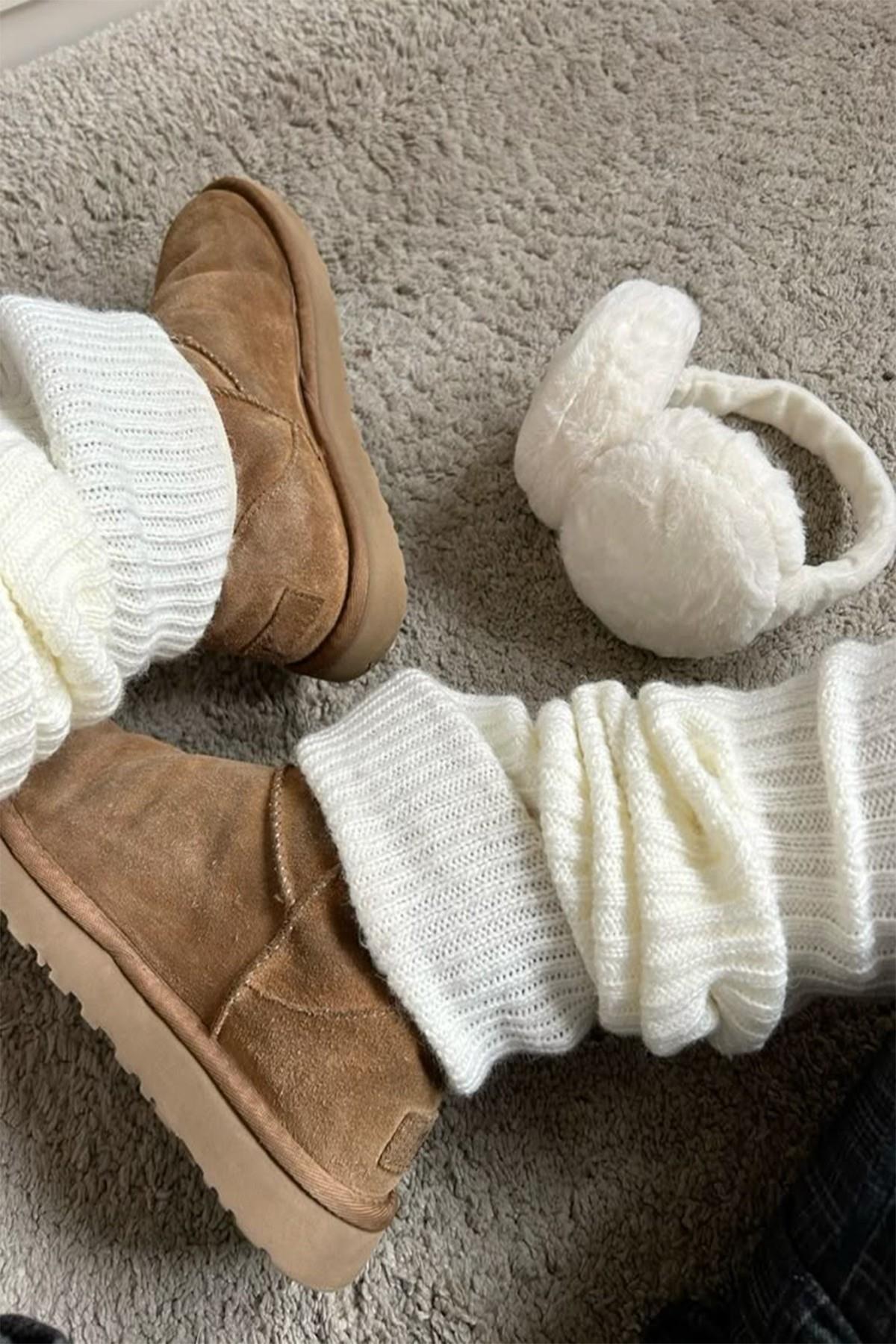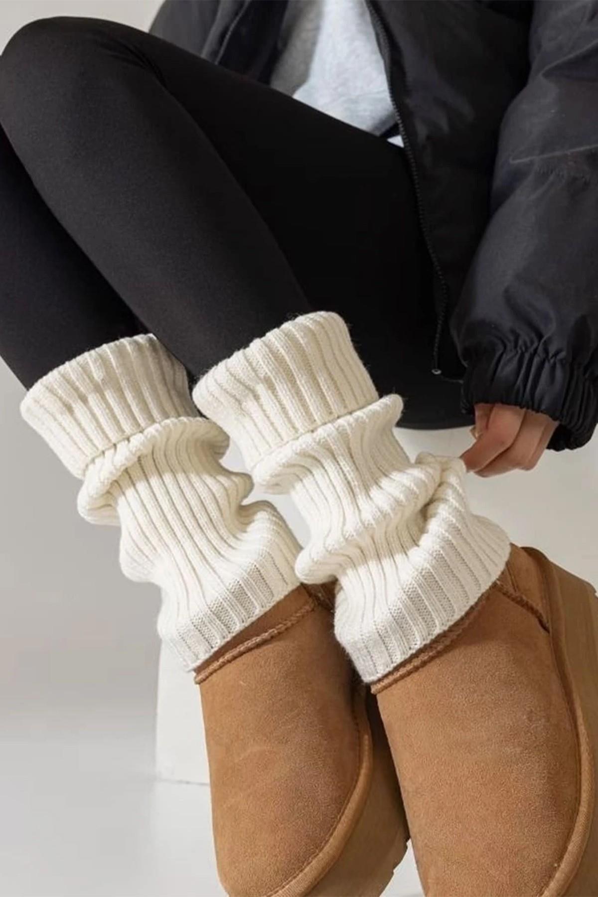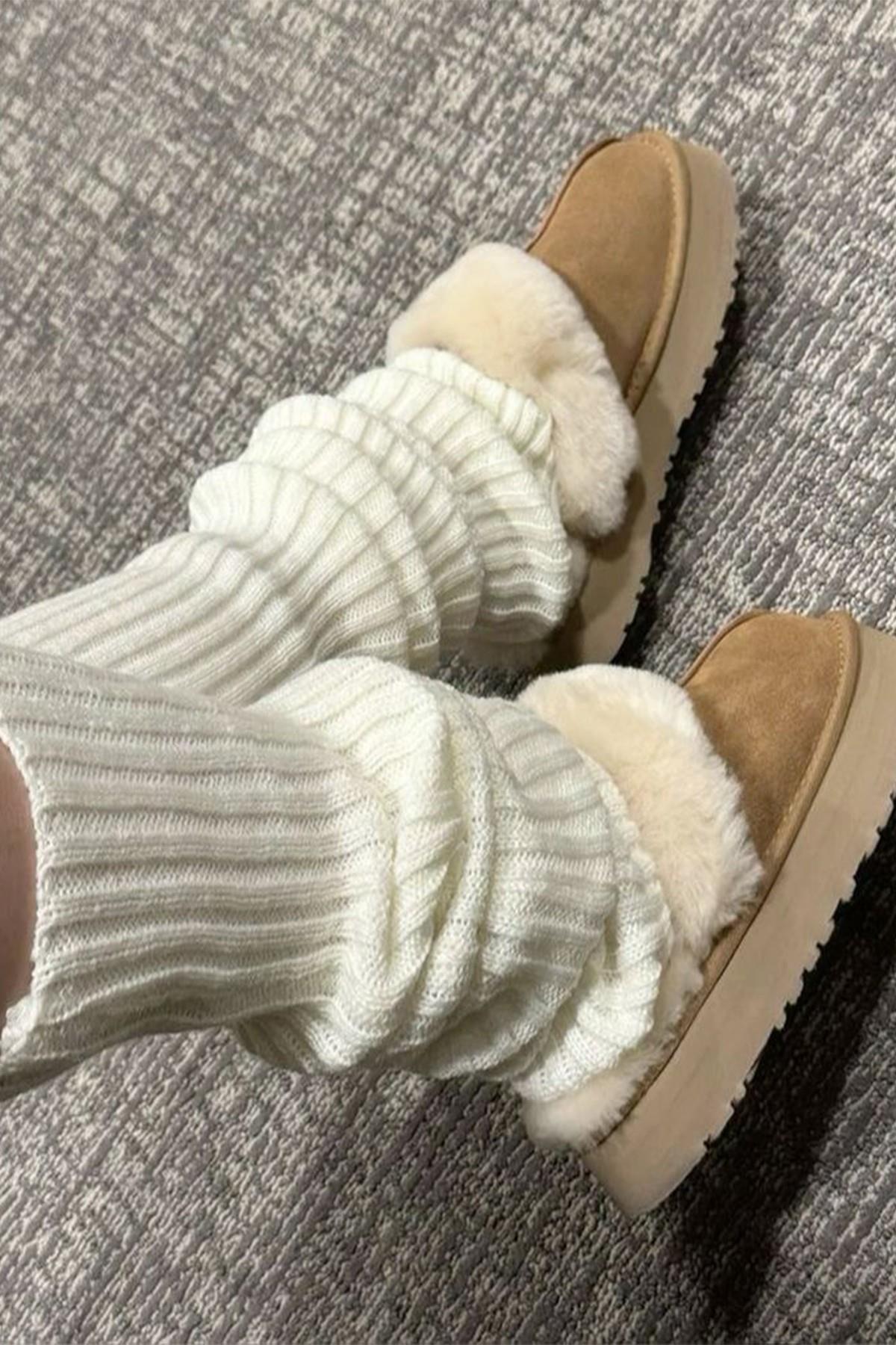 Ekru %100 Akrilik Üst Kalite Triko Örgü Çorap Tozluk (BHT-4819)