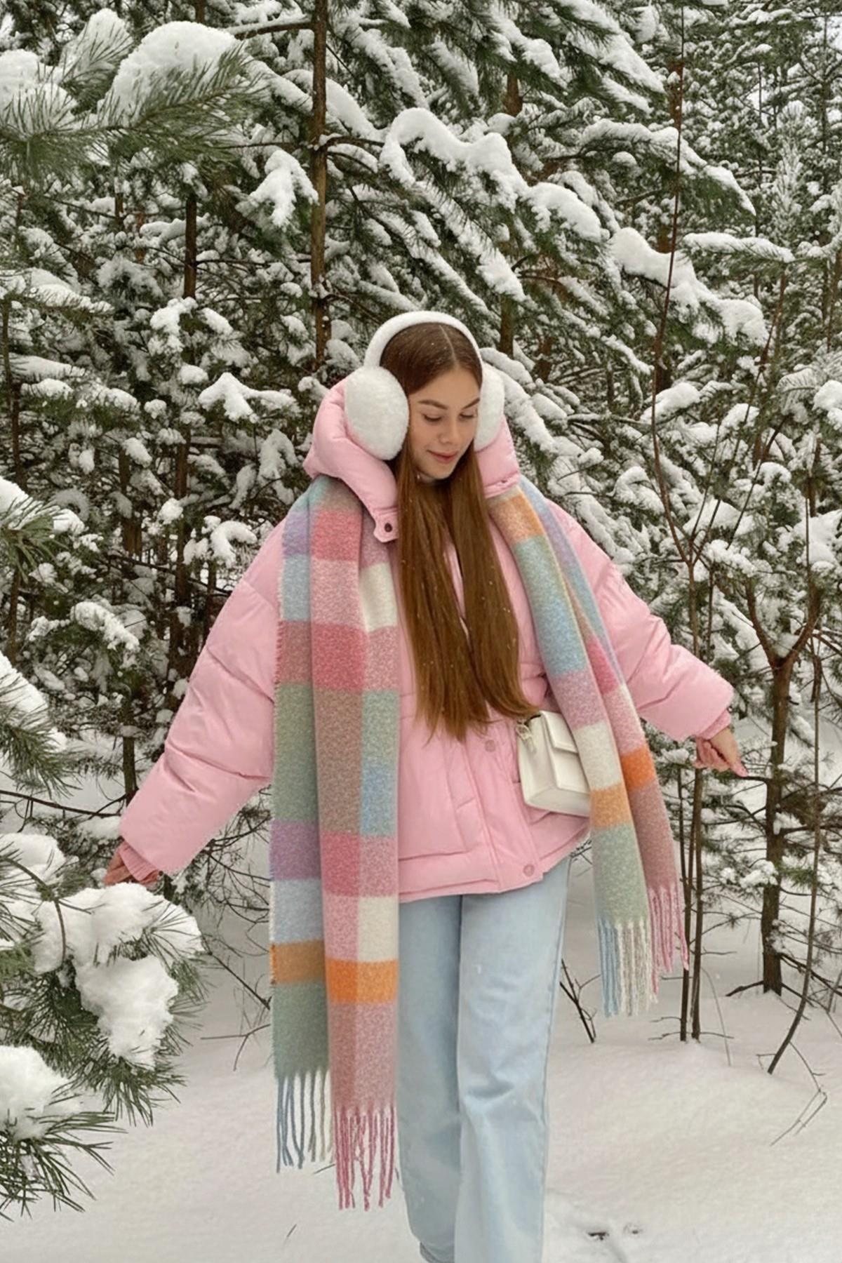 İthal Puffy Pastel Kare Desenli Atkı Şal Omuz Şalı (BHT-4543)