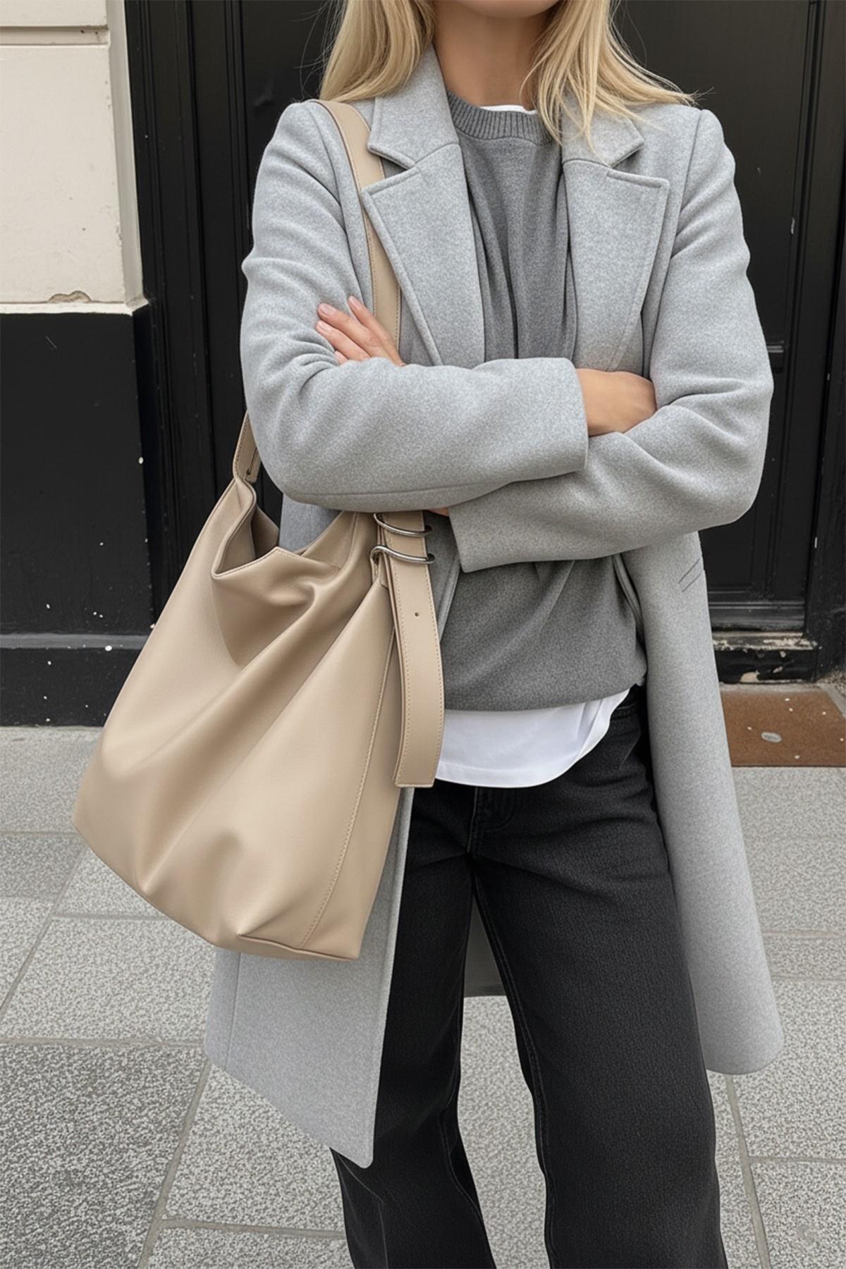 Kadın Bej Kahve Brs Tote El Ve Omuz Çantası (BHT-4849)