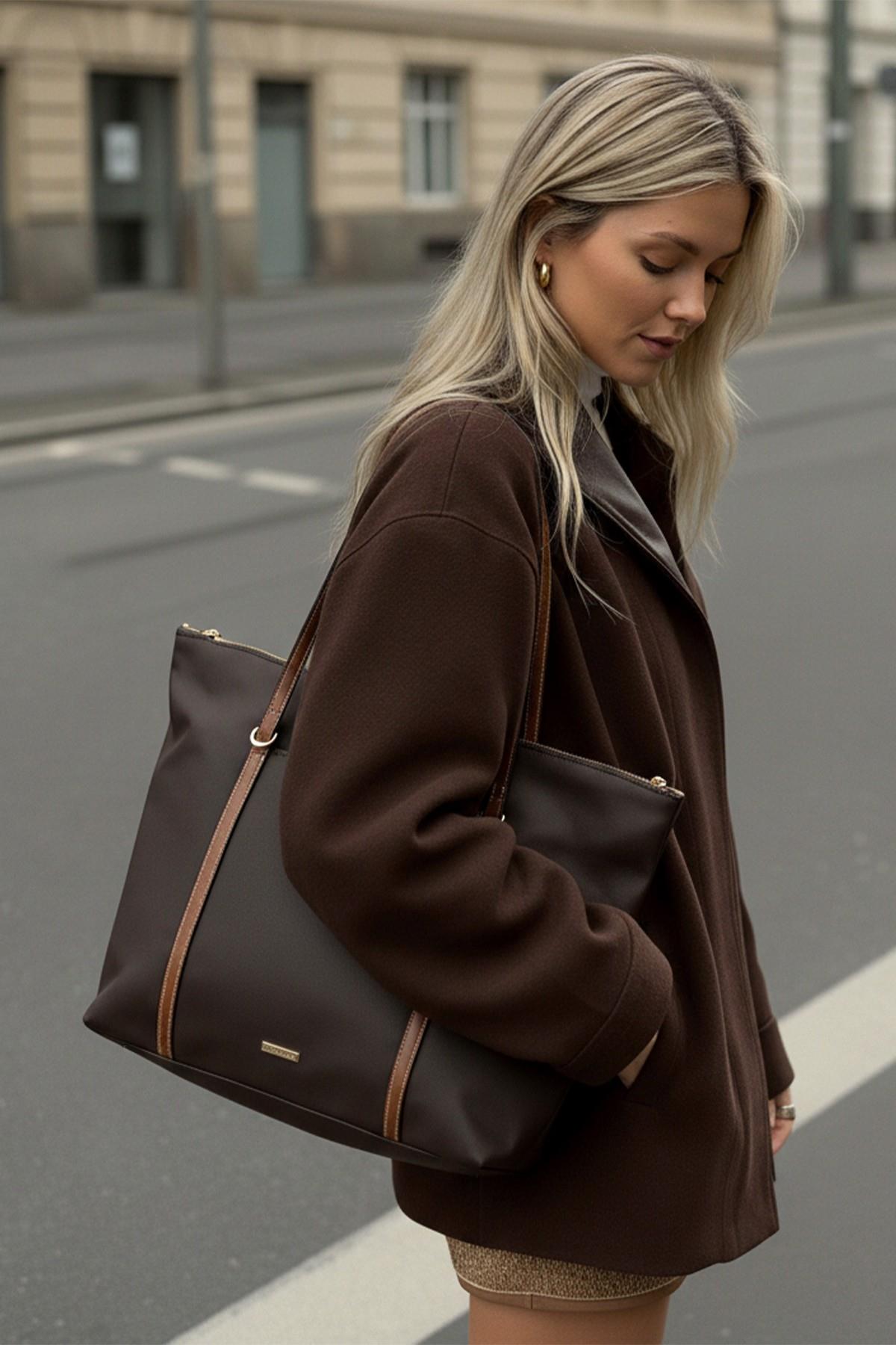 Kadın Mona Acı Kahve Tote Omuz Çantası (BHT-4871)