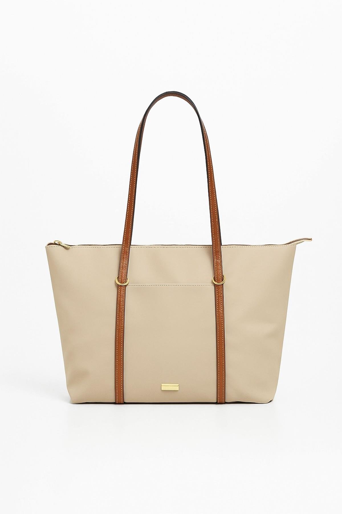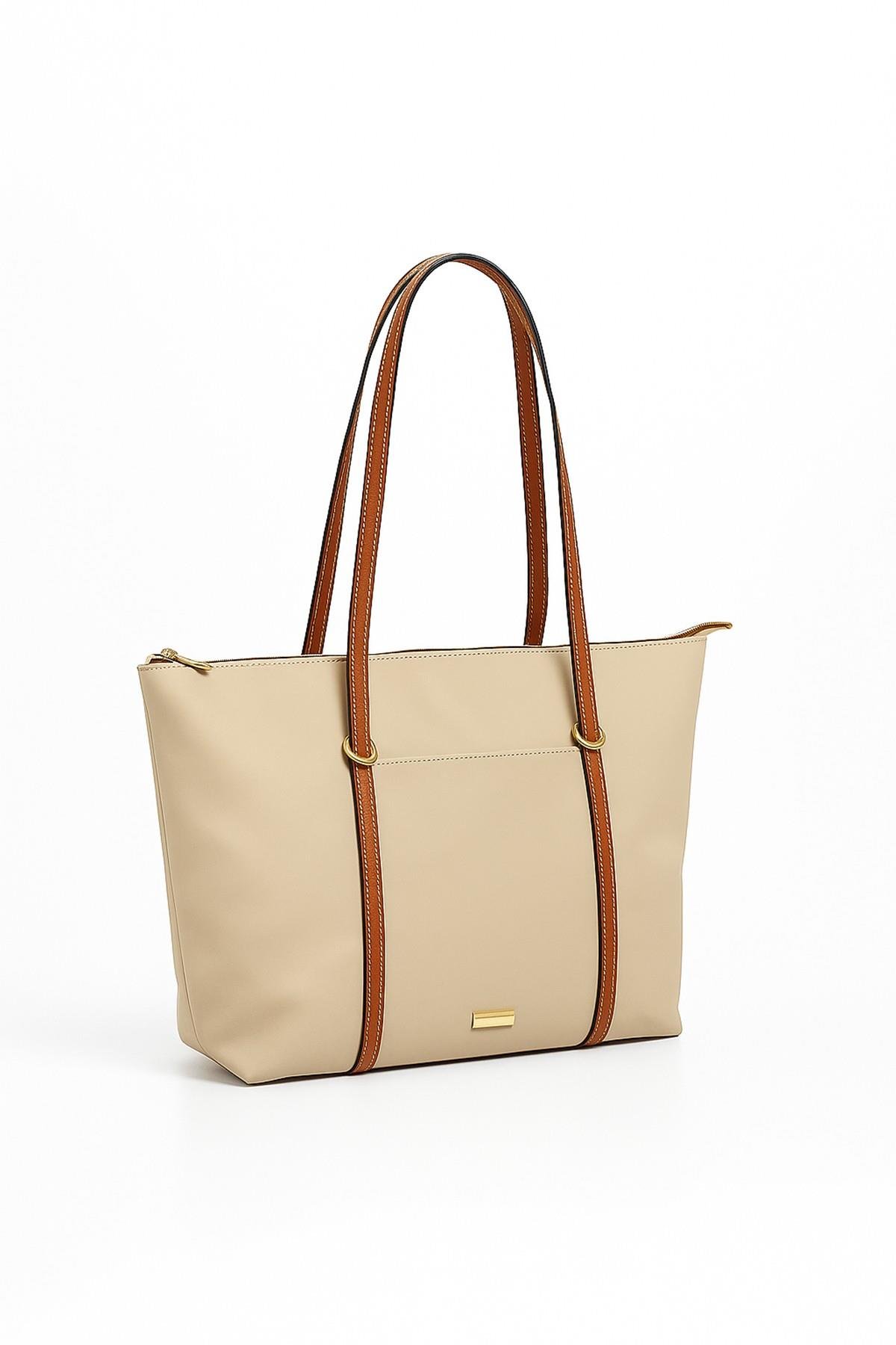 Kadın Mona Krem Tote Omuz Çantası (BHT-4873)