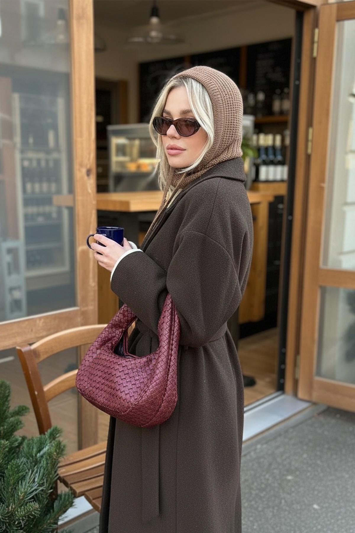 Kahve Triko Örgü Balaclava Bere Şapka (BHT-4816)