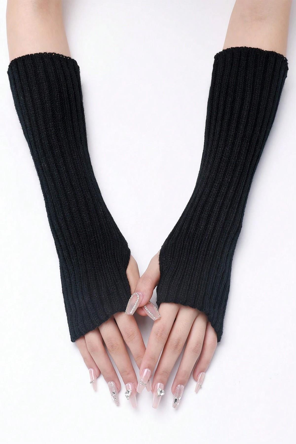 Siyah Triko Örgü El Isıtıcı Kolluk Parmaksız Eldiven (BHT-4807)